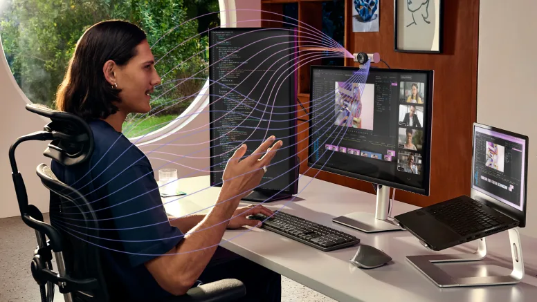 MX Brio has 2x finer image detail and face visibility vs Brio 4K and keeps you in the spotlight even in low light or backlit situations, while AI face-based image enhancement keeps you looking sharp. Auto-exposure, auto white balance, and image noise reduction keep your video looking color-accurate and crisp.